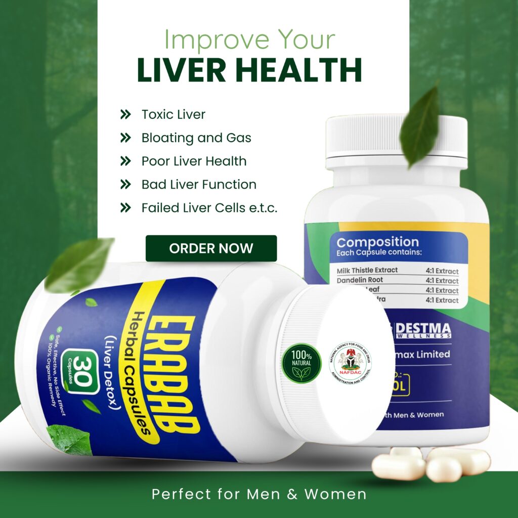 Erabab Liver Detox is NAFDAC-approved and works fast to relieve stubborn liver related pains and symptoms.
