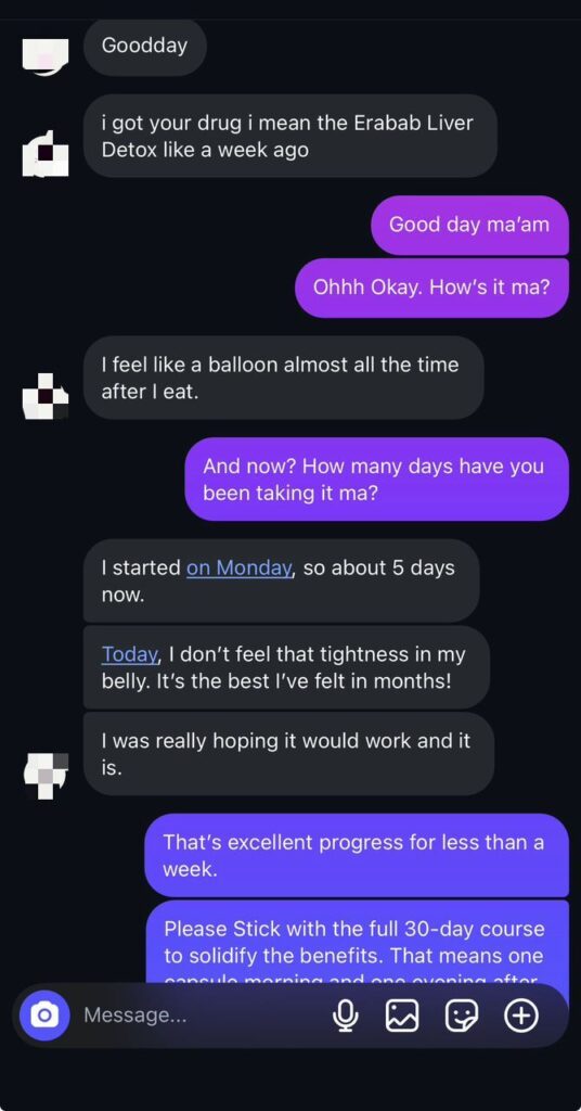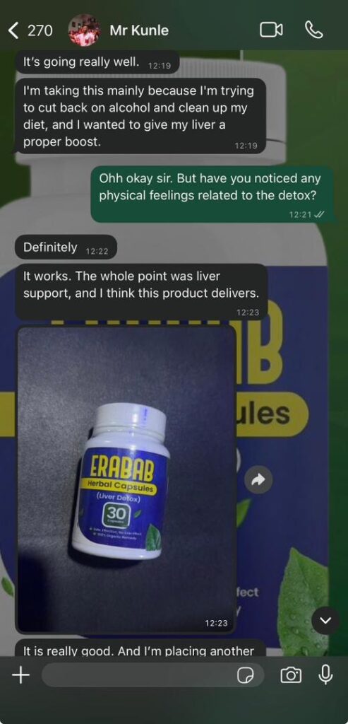Then one day, a friend mentioned Erabab Liver Detox, especially the Erabab Liver Capsule. At first, I didn’t believe it after all, nothing had worked before but I figured I had nothing to lose.