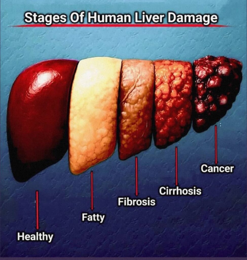 your liver gets weaker, toxins build up, and the damage multiplies.